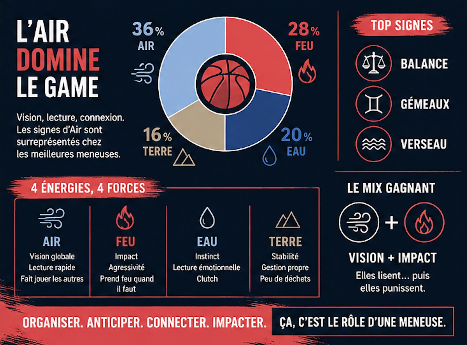 Un équilibre parfait pour les basketteuses Air (lecture du jeu) Feu (prise de décision).